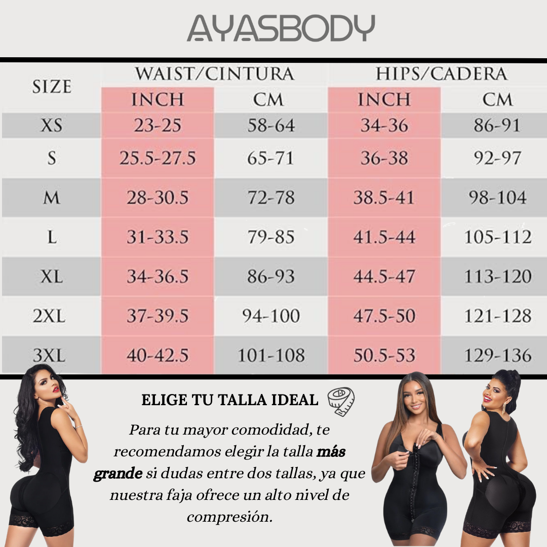 Te recomendamos consultar nuestra guía de tallas antes de comprar. Si dudas entre dos tallas, elige la más grande para mayor comodidad o la más pequeña para un efecto más estilizado. Y recuerda: ¡las fajas deben quedarte ajustadas, pero nunca dolorosas!